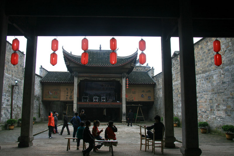 臨河戲臺(tái)幾乎天天都唱戲給烏舡子看。唱他們最?lèi)?ài)看的湘劇,并且都是折子戲而非整場(chǎng)戲,因?yàn)檎麍?chǎng)戲常常要唱十天半月,烏舡子沒(méi)看得完就要返航。折子戲短,最切合烏舡子的??繒r(shí)日。唱的多半是“三國(guó)戲”:《空城計(jì)》、《定軍山》、《走麥城》、《三氣周瑜》,還有《黃鶴樓》、《摘梅桃》……數(shù)也數(shù)不完。戲班子都是由八元堂寧鄉(xiāng)會(huì)館從各地邀請(qǐng)來(lái)的,免費(fèi)公演。招呼戲班子的費(fèi)用由會(huì)館埋單,免不了要請(qǐng)到怡華樓、月華樓、奇珍閣等有名的飯館去吃“八大碗”,唱完戲還有夜宵招待,吃靖港的特色小吃。戲班子當(dāng)然就更賣(mài)力。烏舡子上的船老大不但愛(ài)看戲,還蠻會(huì)享受,他們把船搖得正正地對(duì)準(zhǔn)臨河戲臺(tái),和小老婆肩并肩雙雙坐船頭,一邊津津有味地看戲一邊津津有味地喝著靖港谷酒,吃著從靖港街上買(mǎi)來(lái)的香干子和鹵菜,搖頭晃腦,張嘴咋舌,樂(lè)不思蜀。也有許多古鎮(zhèn)居民來(lái)看免費(fèi)戲,他們常常爬到烏舡子上,與船老板和和老板娘一起看戲,船老板熱情大方,會(huì)讓出座位來(lái),邊看戲邊和本地居民扯談,對(duì)古鎮(zhèn)也就更加熟悉了解。