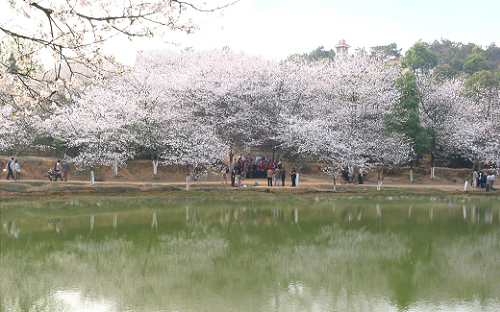 園內山明水秀,萬木爭榮,空氣格外清新,適宜于森林療養(yǎng)和空氣療養(yǎng)。園內的園林造景別具一格,以三湘景園為代表的人文景園,以櫻花園、珍稀蔭生植物園、木蘭園、桂花園為代表的專類園,雅致大氣,內涵豐富。每年3月園內近3000株櫻花競相開放,游客絡繹不絕。我園精心舉辦的櫻花生態(tài)文化節(jié)已成為深受廣大市民喜愛的踏春賞花交游的民眾節(jié)日。1992年在公園西部海拔106米的山包上,新建天際閣,高20米,4層,下為正方形,上為六邊形,翹角寶頂,黃色玻璃瓦覆蓋,朱欄畫棟,光彩照人,為南郊新添勝景。