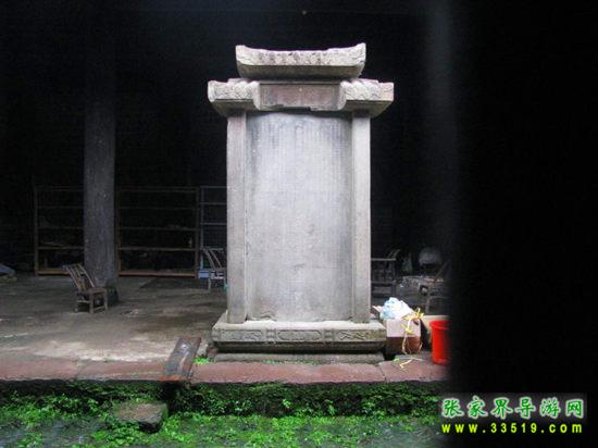 土司德政碑立于司城衙署遺址左側(cè),由青石雕鑿而成。碑高2.74米,寬1.2米,腹背刻字,上有石帽蓋頂,旁扶石柱。此碑是清康熙五十二年(公元1713年)2月永順土官為永順等處宣慰使彭泓海歌功頌德而建。碑頭篆書“甘棠遺愛”四字。正碑兩側(cè)有一對聯(lián):“一片石銘恩德厚,千秋歌頌山河新”。正中刻有“欽命世鎮(zhèn)湖廣永順等處軍民宣慰使司宣慰使都督府致仕恩爵主爺中涵德政碑”。碑文記述了所轄58旗、380洞軍民懷念彭泓海之德政以及“嘗聞恩可結(jié)民心,不能使民心之不忘記,功可顯當(dāng)時,不能使后世之取法”的土司統(tǒng)治信條。