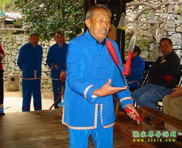 三棒鼓,唐代稱三仗鼓,明沈行符《顧曲雜言》 曰:“吳下何來(lái)有打三棒鼓乞錢者,余幼時(shí)有見(jiàn)之也, 起于唐咸通中(公元865年)”約于明代傳入本境, 并逐漸成為群眾增聞樂(lè)見(jiàn)的民間藝術(shù)形式。每年春節(jié) ,藝人們結(jié)伴走村竄寨拜年,表演對(duì)象不分貧富,戶 戶必到。如遇貧寒之家,表演者將別家贈(zèng)送禮品相送 ,意在人人過(guò)節(jié)歡喜。充分體現(xiàn)出土家族人熱情好客 ,心地善良的民族性格,對(duì)加強(qiáng)民族團(tuán)結(jié)有一定作用 。 三棒鼓通常由三至五人組成,一人擊鼓唱詞,一 人鑼鈸配樂(lè),一人?;ò簟;ò羧?,長(zhǎng)一尺,舞者 左右手各持一根,將另一根拋在空中,左右開(kāi)弓,擊 打空中花棒使之不落地。也有以刀代棒,以五刀代三 棒的技藝。技藝高強(qiáng)者,突然把刀拋得極高,來(lái)一個(gè) 眼花繚亂,不禁稱絕。打三棒鼓,通常有“鬧春耕” 、“收割打場(chǎng)”、“慶豐收”、“拜年節(jié)”四套,分 “鯉魚(yú)跳龍門”、“玉女穿梭”、“板巖漂灘”等項(xiàng) 目。打三棒鼓技巧性強(qiáng),表演時(shí)需高度集中,用力適 當(dāng),貫通一氣,并與演唱者默默配合。
