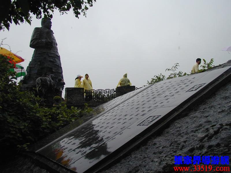 (賀龍銅像)賀龍元帥是中華人民共和國的開國元勛,人民解放軍的締造者之一。他就出生在天子山西邊桑植縣洪家關(guān)的一個農(nóng)民家庭,從兩把菜刀砍鹽局首義起,一生充滿傳奇色彩,元帥家鄉(xiāng)流傳著無數(shù)關(guān)于他的故事與傳說。天子山一帶曾經(jīng)是賀龍、任弼時、肖克、王震等將軍打過游擊的地方。一回,賀龍在鑼鼓塌被民團包圍了,當(dāng)?shù)乩习傩占敝猩?,把賀龍卷在斗墊里,躲過了殺身之禍。這個故事至今還在這一帶流傳。