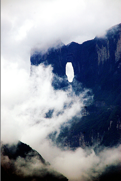天門洞開:九百九十九級臺階登上天門洞,登天祈福。高131.5米,寬50余米,南北對開于千尋素壁之上,氣勢磅礴,巍峨高絕,是罕見的高海拔穿山溶洞,更是盡顯造化神奇的冠世奇觀,2006俄羅斯空軍張家界天門山特技飛行表演讓天門洞懸念升級,再次成為全球焦點。