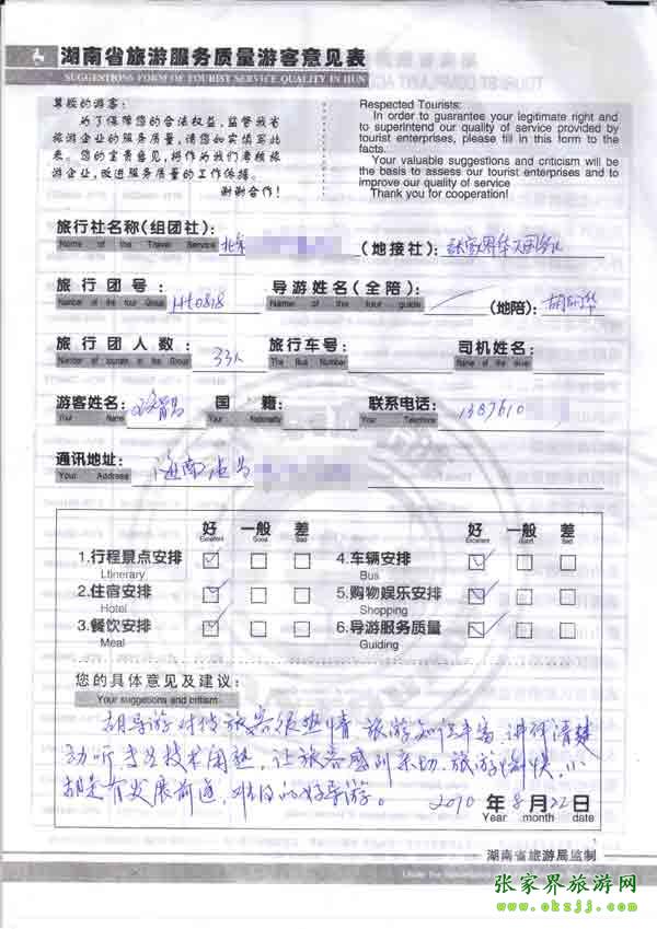 2010年8月22日海南王先生一行33位旅游質(zhì)量反饋:服務(wù)很好,旅游很愉快