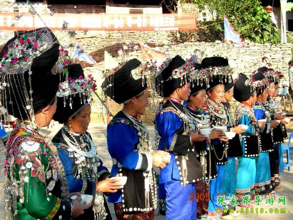 7 在苗王城!滿身銀飾的盛裝苗女會熱情卡歌、攔門禮捧上的是醇美的苗王米酒、青瓦木房里香噴噴的是苗家飯菜、紡車邊老婆婆與編織花帶的少女說的是難懂的苗話、多情黛帕留在英俊小伙臉上的是愛的鍋煙、古樹下迷狂娛神的是神氣的苗老司、赤膊小伙跳的是強(qiáng)悍、狂放的鼓舞、篝火晚會上縱情的是歡歌與笑語、、、、苗王城是迷人的所在!苗王城是醉人的地方??!